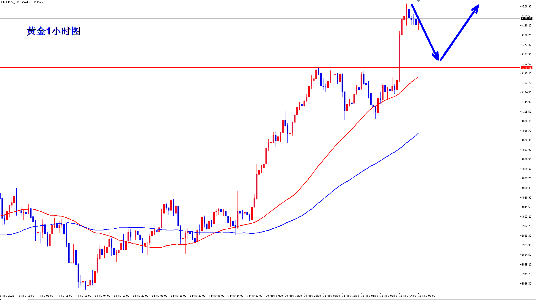 李槿:11/13黄金二次探高确认中!周四周五防回调!
