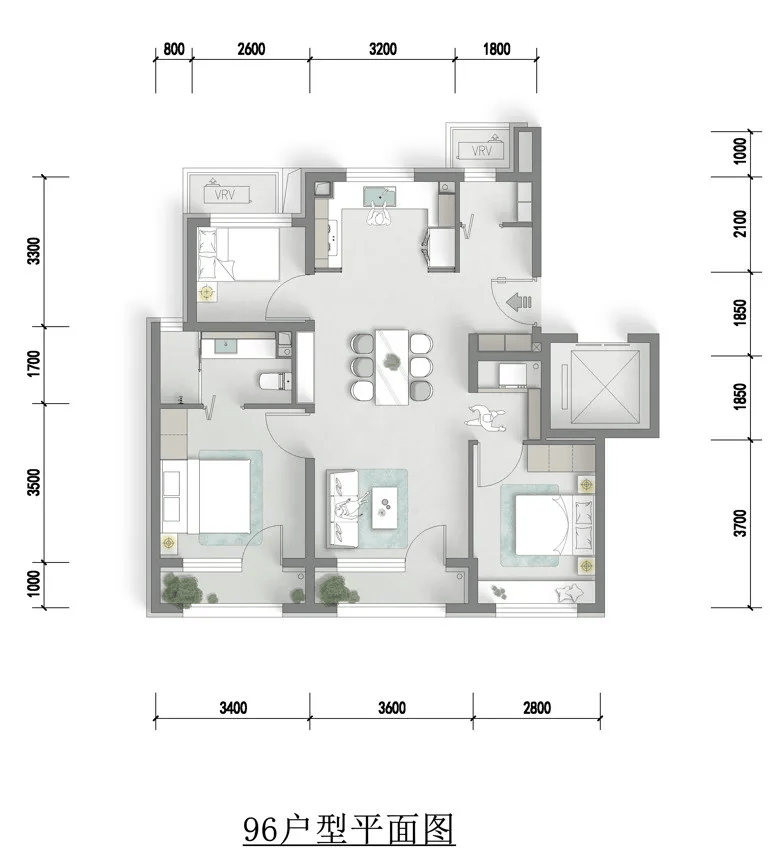 · 建面约96㎡三居:成长型舒适家,南北通透+双卫配置,融入LDK方厅、步入式家政间等改善标签,适配全生命周期需求;