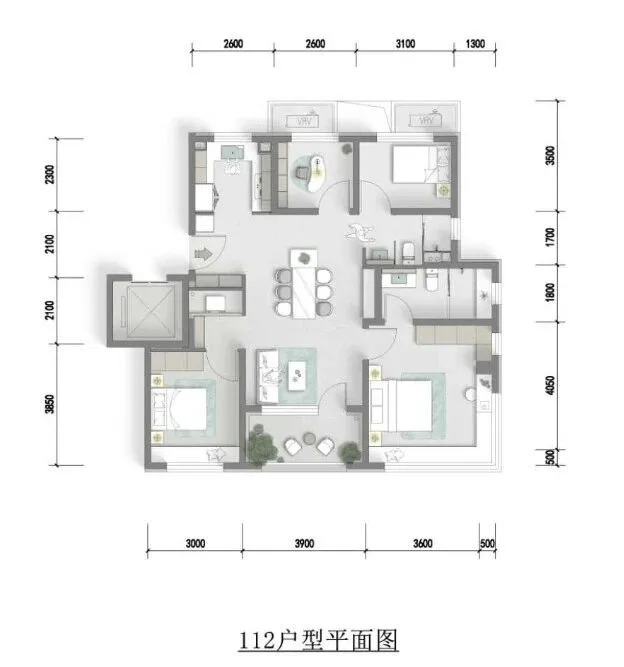 · 建面约112㎡四居:专利级巨幕厅堂,南向超大开间实现全景视野,全明四房零浪费,社交属性拉满;