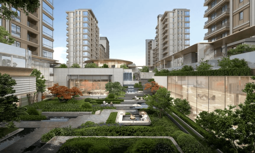 · 园林设计:拒绝奇石怪木的堆砌,以“两轴一芯”十字中庭铺陈游园场景,通过情感与秩序还原东方园林修养。近900㎡下沉庭院、墅级植被布局,让社区成为自然与艺术的对话场。