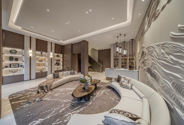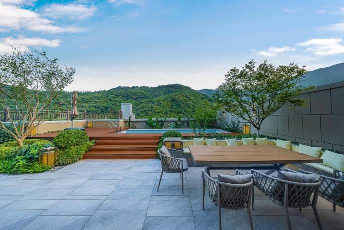 在产品细节上,建面约232-510㎡的户型,通过约8.9米的南向奢阔面宽、全景落地窗,将半山风景最大化引入室内。约3.3米的层高、局部超8米的挑空以及灵活可改造地下空间,为高端家庭生活与社交提供了多元、奢阔的物理容器。