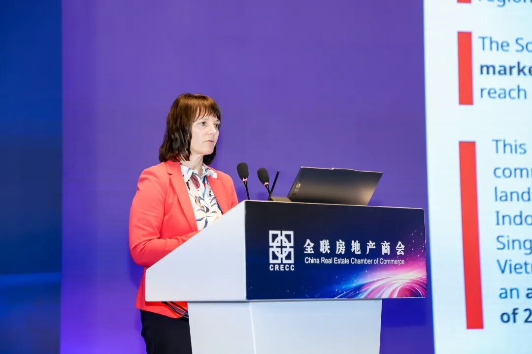 Claudia Sixl(克劳迪娅?西克斯)在主题分享中,深入解析亚太及东南亚房地产市场的机遇与挑战。她指出,亚太地产市场增长势头强劲,预计2030年年均增长率达7.6%,2025年跨境投资同比增幅将达60%。