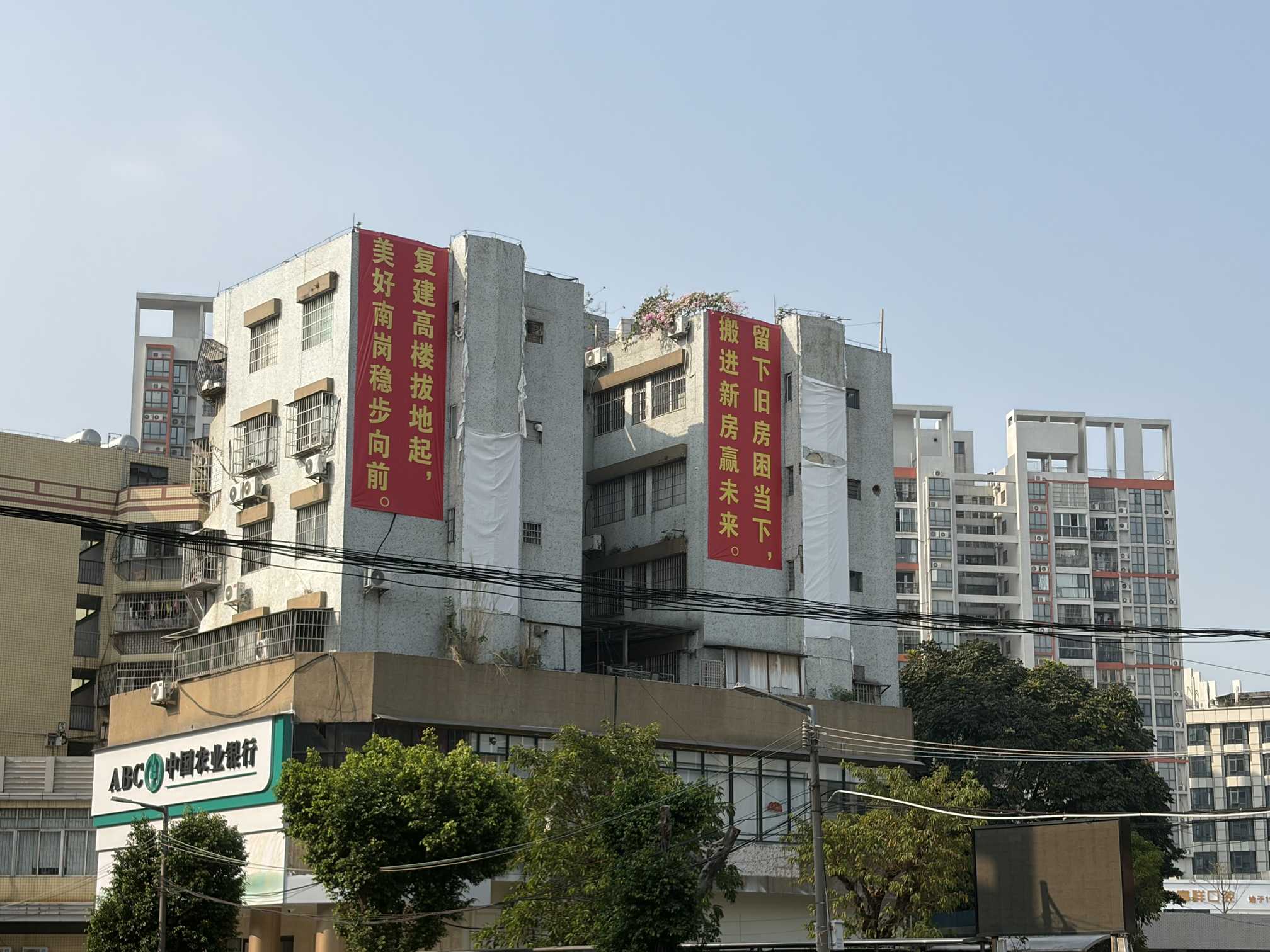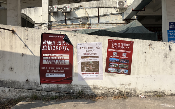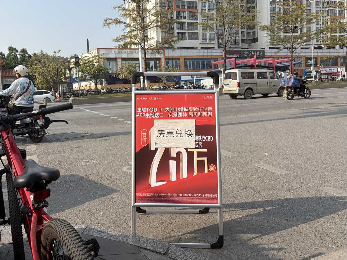 南岗村的街头巷尾,如今被全市各楼盘的宣传海报占据。村民每天买菜必经过的肉菜市场对面,同一堵墙上,来自天河与增城的楼盘暗中较劲。天河的“能建·天河麓誉府”打出“黄埔价、选天河”的口号,但其单价远高于房票补偿标准,兑换比例高达2.68:1;增城的楼盘则以“房票1:1换房”为卖点,喊出“等额房票,当然买更大面积”。