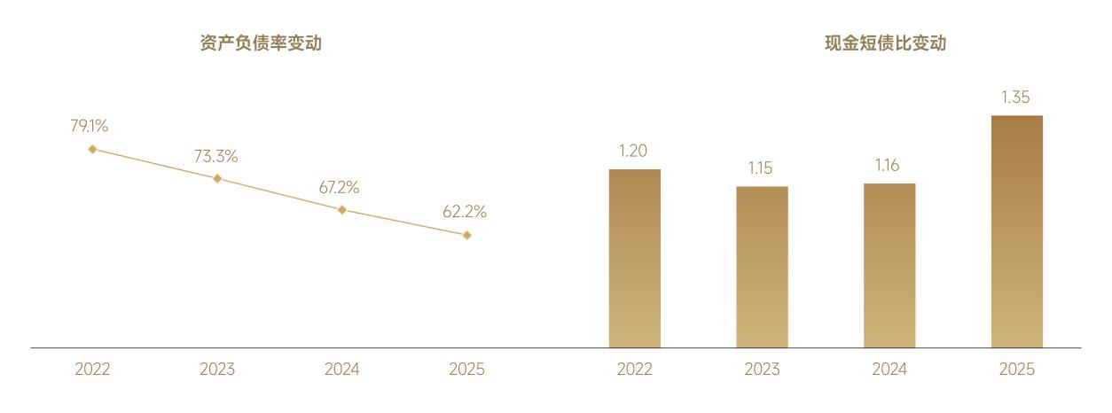 近日众安集团如期发布2025年财报。截至2025年末,集团资产负债率较上年下降5个百分点至62.2%,现金短债比提升至1.35,连续多年稳居“绿档”,无债务违约记录,现金流健康。当同行们还在为还债焦头烂额时,众安的财务盘面很稳。